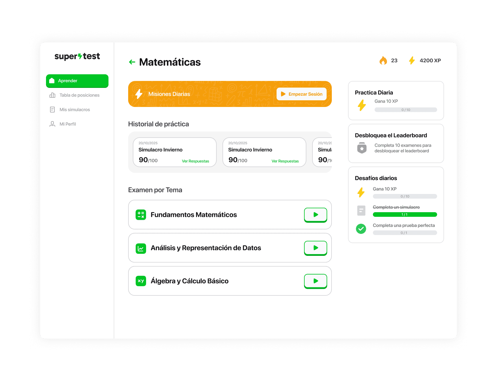 Simulacros personalizados para reforzar las áreas de mejora en los cursos de la institución.